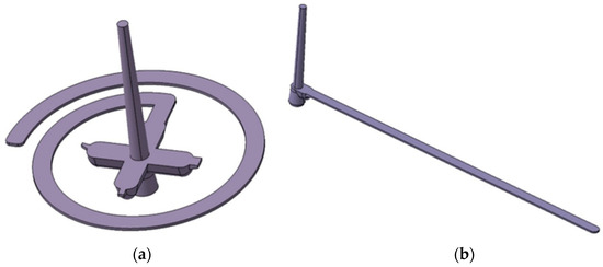The test samples were produced on 2 injection molds. The injection mold cavity was a spiral shape (Figure 1a) with a length up to 2000 mm (designed so that the melt does not reach the end of the spiral, for comparison purposes). The spiral-shape cavity mold was used to determine the flowability of polymers. The length of the spiral greatly exceeded the polymer filling capabilities at the specified process parameters. Due to the fact that the spiral cavity was not fully filled with the polymer and could lead to inaccurate results, test mold 2 was designed to ensure full filling of the cavity. The second mold was designed to verify the results from the spiral mold (Figure 1b). It was a mold cavity in the shape of a developed spiral in 4 length variations defined by the standard, where filling of the mold cavity was ensured, and the mold cavity had the same cross-section as the spiral cavity. The single cavities were designed to allow the polymer to fill the entire mold cavity with different injection molding process parameters set. The 2 mold cavities had lengths of 200 mm, 150 mm, 60 mm, and 30 mm. The measurement results on both test specimens showed the same values. For this reason, the results from the spiral injection mold (mold 1) were presented in this paper. The cross-section of the mold cavity was 6 × 1 mm. The test samples are shown in Figure 1.