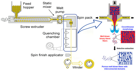- Banerji, A.; Jin, K.; Mahanthappa, M.; Bates, F.; Ellison, C. Porous Fibers Templated by Melt Blowing Cocontinuous Immiscible Polymer Blends. ACS Macro Lett. 2021, 10, 1196–1203. [Google Scholar] [CrossRef]
