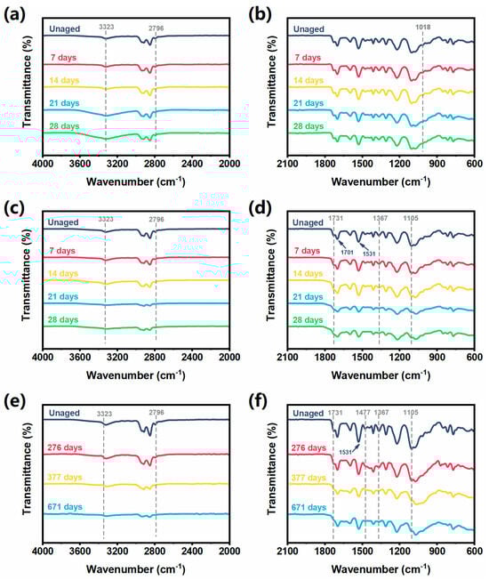The ETPU samples after aging treatment were analyzed by FTIR, and the results are shown in