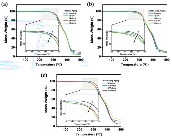 The thermal stability of the samples before and after aging was investigated, and the TG curves of the samples are shown in