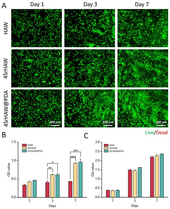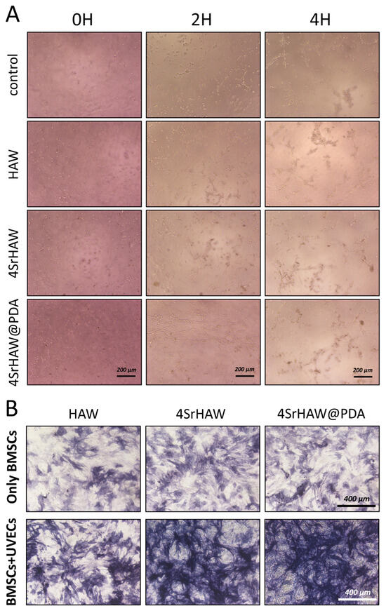 3.2. SrHAW@PDA Improved the Biological Performance of BMSCs and UVECs