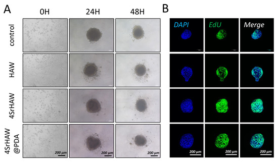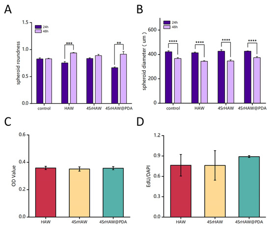 3.3. Effect of SrHAW@PDA Nanowires on Cell Spheroid Formation