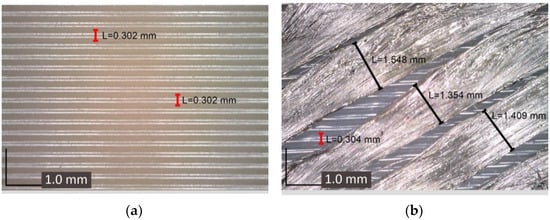 Samples of the polymer matrix with dimensions of 35 mm × 16.2 mm × 4 mm reinforced with five carbon rods positioned at various distances were examined. The plate thickness of 4 mm corresponded to the projected thickness of a socket. The diameter of a carbon rod was 0.6 mm. The distance between the rods was altered with an increment step of 0.1 mm, starting from the initial position where the rods were placed adjacent to each other (see Figure 1a). Ideal adhesion between the rods and the matrix was assumed.