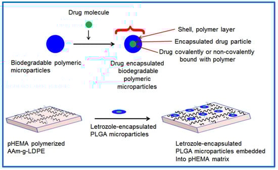 2.2. Preparation of Letrozole-Encapsulated PLGA-pHEMA/AAm–g–LDPE Drug Release System