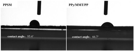 Contact Angle figure of PPSM and PPy/MMT/PP.