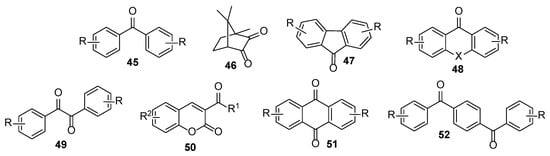 - Dadashi-Silab, S.; Aydogan, C.; Yagci, Y. Shining a light on an adaptable photoinitiator: Advances in photopolymerizations initiated by thioxanthones. Polym. Chem. 2015, 6, 6595–6615. [Google Scholar] [CrossRef]