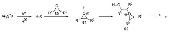 - Sangermano, M. Advances in cationic photopolymerization. Pure Appl. Chem. 2012, 84, 2089–2133. [Google Scholar] [CrossRef]