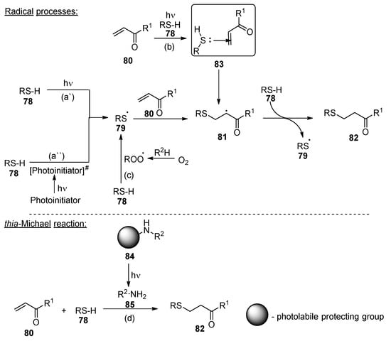 - Lowe, A.B. Thiol-ene “click” reactions and recent applications in polymer and materials synthesis. Polym. Chem. 2010, 1, 17–36. [Google Scholar] [CrossRef]