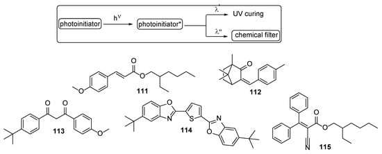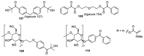 - Allen, N.S. Photoinitiators for UV and visible curing coatings: Mechanisms and properties. J. Photochem. Photobiol. A 1996, 100, 101–107. [Google Scholar] [CrossRef]