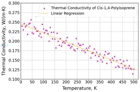 - Vasilev, A.; Lorenz, T.; Breitkopf, C. Thermal Conductivities of Crosslinked Polyisoprene and Polybutadiene from Molecular Dynamics Simulations. Polymers 2021, 13, 315. [Google Scholar] [CrossRef] [PubMed]