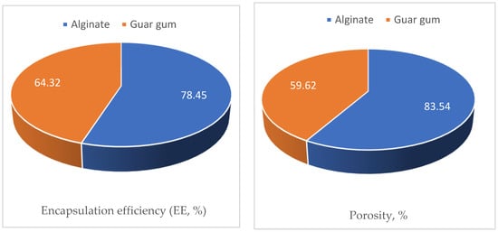 It is worth mentioning that dispersing a fine powder like alginate or guar gum in water, to obtain homogeneous solution, was achieved by using homogenizer. Moreover, to prevent producing solid aggregates within alginate or guar gum solution intended to be crosslinked, an innovative mixing manner of powder with water was conducted. First, a known volume of deionized water was centrifuged by the homogenizer, which was adjusted to make a central vortex in the water. Then, the desired amount of a powder was added slowly, producing a homogeneous solution that gave the best encapsule quality when crosslinked. Finally, the microcapsules were then air-dried and then freeze-dried until its moisture content reached about 5% [79].