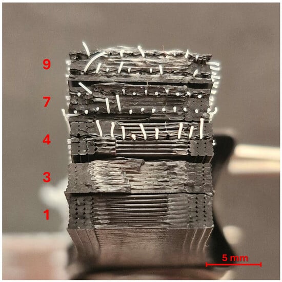 Cross-sectional images of printed samples with different numbers of reinforcement layers.
