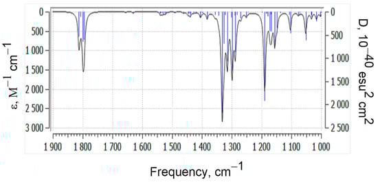 Absorption region 1900–1000 cm−1 of the theoretical spectrum of the model compound (B3LYP/6-31G(d) method.