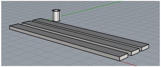 For each material, it is proposed to manufacture three rectangular specimens and one tubular specimen. The specimens were not designed according to the ISO standards, because some authors and our own experience indicate that the section changes in FDM-printed specimens with thermoplastics are fragile points that directly influence mechanical tests [28]. For this reason, specimens are designed without changes of section, with dimensions of 120 mm long, 10 mm wide and 3 mm deep for axial tensile, compressive and flexure tests, and with dimensions of internal radius of 8 mm and external radius of 6.5 mm, with a length of 8 mm for the compressive radial test (Figure 2). A commercial computer-aided design (CAD) software is used for the 3D design (Autodesk Inventor Professional 2025-Español, Autodesk Inc., San Francisco, CA, USA) that is then converted into stereolithographic (STL) format. In addition, another commercial computer-aided manufacturing (CAM) software is used to set the printing parameters (Simplify3D® version 5.1.2, Cincinnati, OH, USA). An attempt has been made to use the same printing conditions for all materials, as these parameters have a strong influence on the values of mechanical properties [29]. The printing parameters are included in Table 2. 3-Dimensional printer NX PRO Dual Filament–Filament (TUMaker, Indart 3D, Irún, Spain) is used for manufacturing the specimens to conduct the proposed test (Figure 3). Prior to melting the extrusion, the materials are dried for 2 h at 50 °C in a spool drier (eBox Lite, eSun, Shenzhen, China).