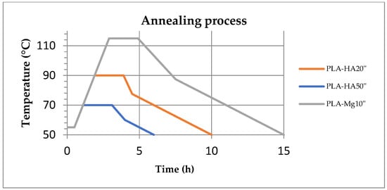 Annealing conditions for PLA–HA20″, PLA–HA50″ and PLA–Mg10″.