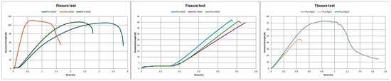 Flexure test results of (a) PLA HA20; (b) PLA HA50; (c) PLA Mg10.