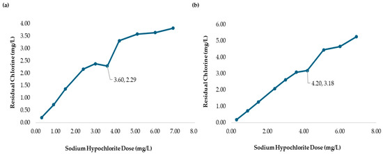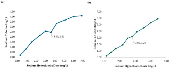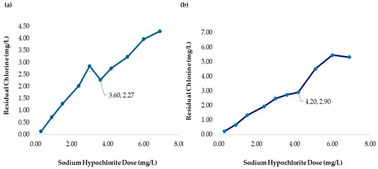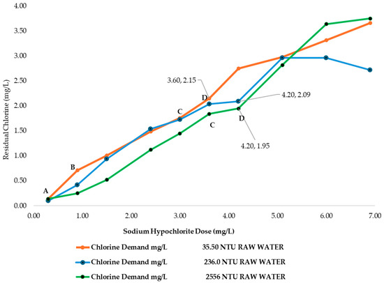 3.4. Chlorine Demand at MWTP for Different Raw Water Turbidities with the Addition of Chitosan