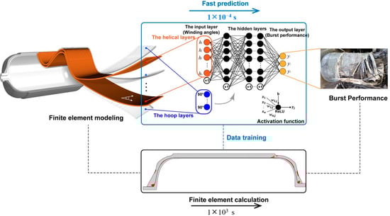 - Wang, Q.; Qin, H.; Jia, L.; Li, Z.; Zhang, G.; Li, Y.; Liu, Y. Failure Prediction and Optimization for Composite Pressure Vessel Combining FEM Simulation and Machine Learning Approach. Compos. Struct. 2024, 337, 118099. [Google Scholar] [CrossRef]