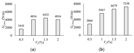 Fracture energy values at different stages: (a) Gf,max; (b) Gf,5mm.