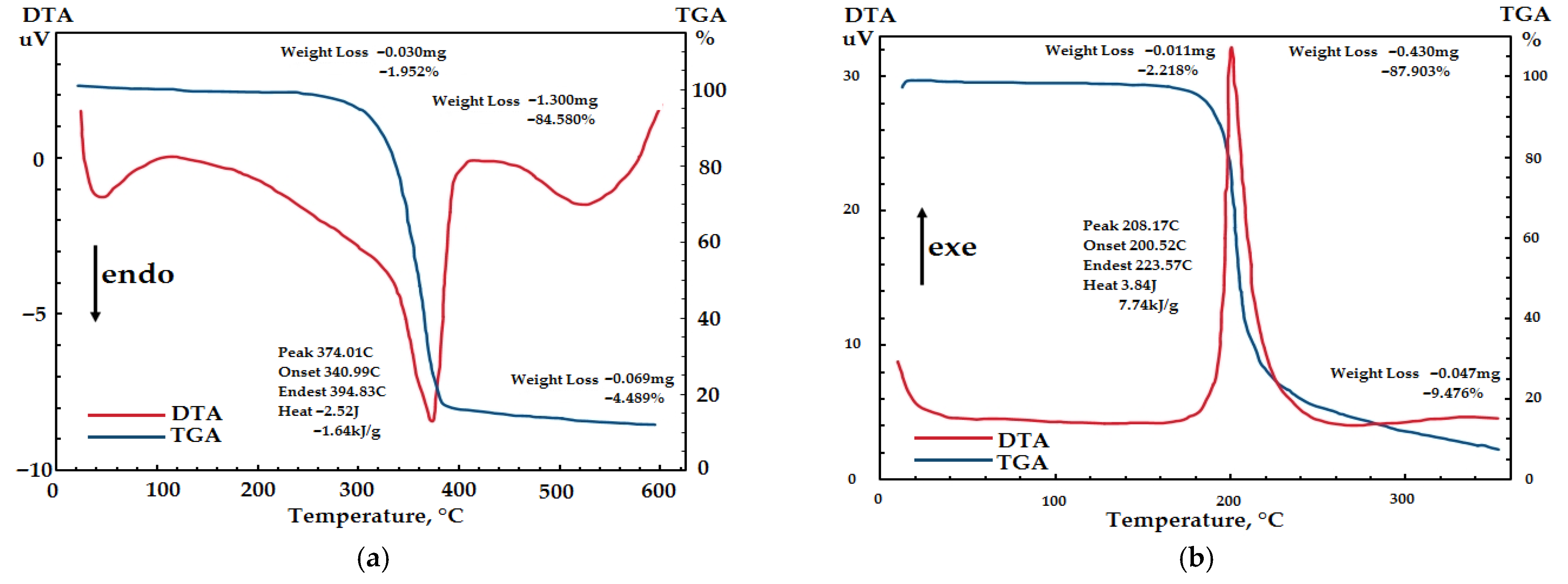 2.5.4. Coupled Thermogravimetric and Differential Thermal Analysis (TGA-DTA)