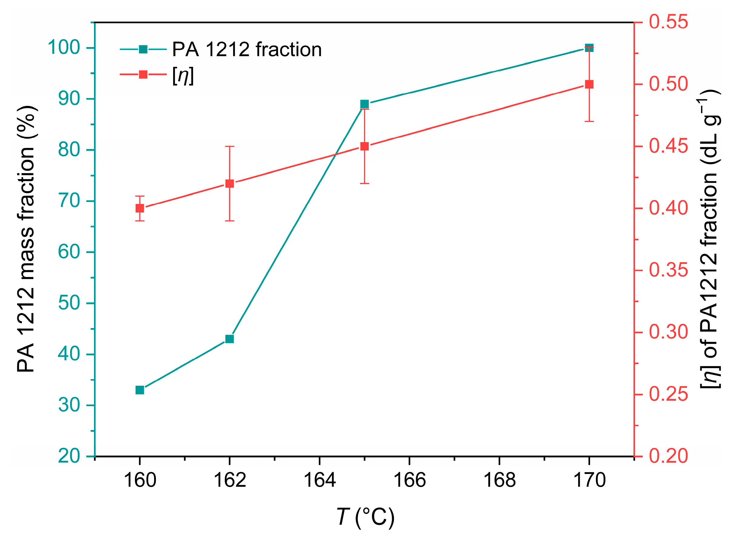 | Experiments Reactor_T_t_flow Rate | TDSSP (°C) | tDSSP (h) | Volumetric Flow Rate (mL min−1) | Gas Velocity (m min−1) [1] | [-NH2] (meq kg−1) | [-COOH] (meq kg−1) | (g mol−1) | D = [COOH] − [NH2] (meg kg−1) | [η] (dL g−1) |