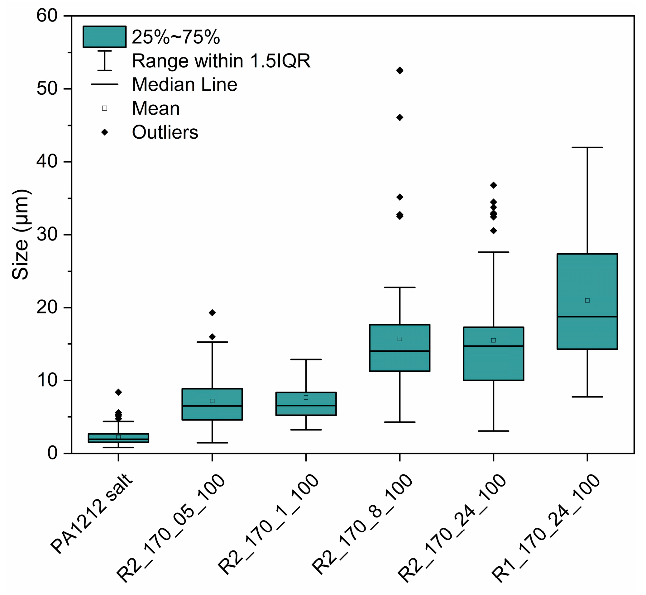| R1_170_24_100 | 170 | 24 | 100 | 0.16 | 46 ± 8 | 395 ± 21 | 4500 | 349 | 0.41 ± 0.02 |