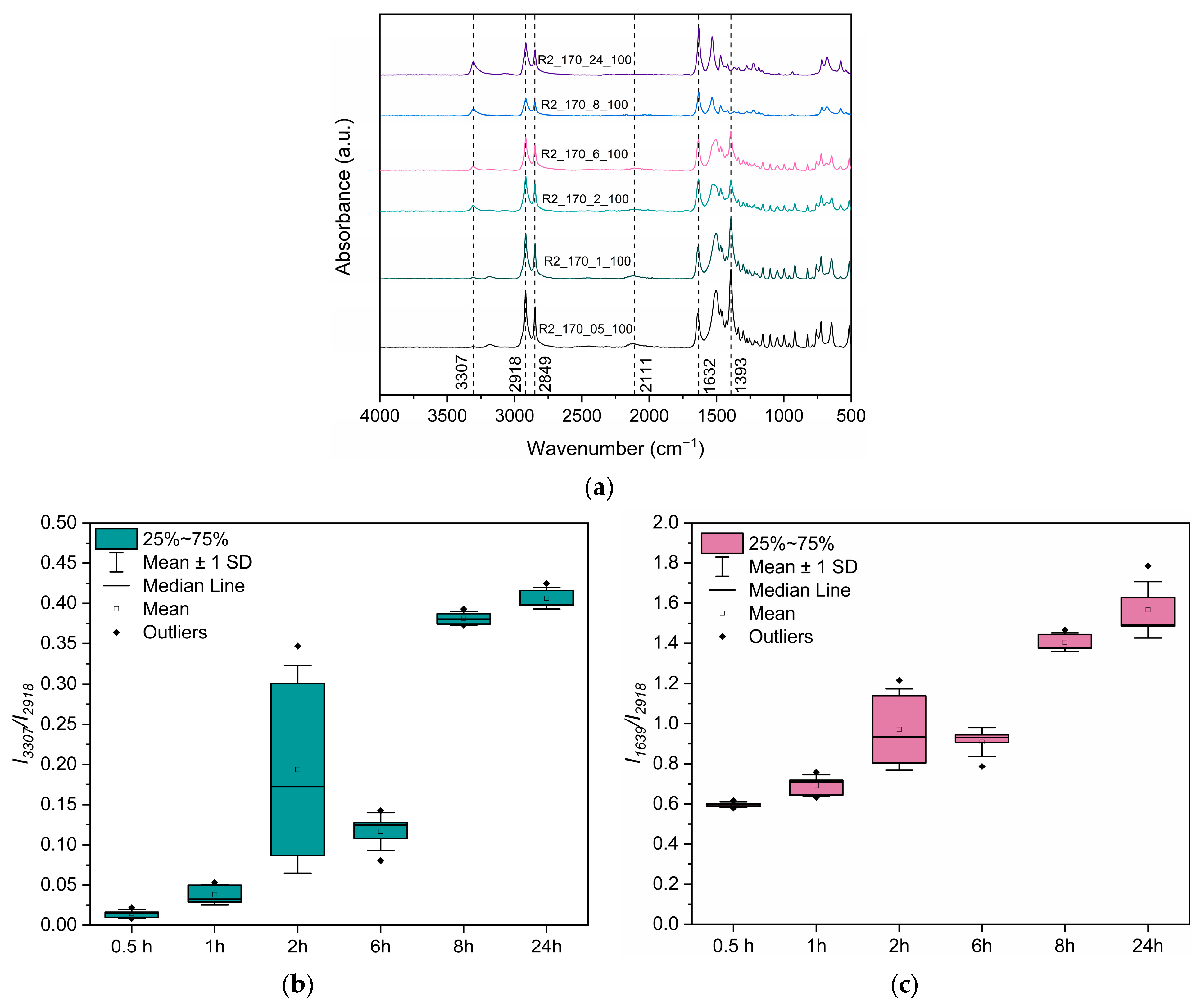 2.4.3. Fourier Transform Infrared Spectroscopy-Attenuated Total Refraction (FTIR-ATR)