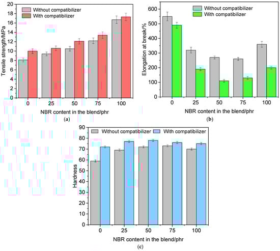 - Botros, S.H.; Tawfic, M.L. Preparation and Characteristics of EPDM/NBR Rubber Blends with BIIR as Compatibilizer. Polym. Plast. Technol. Eng. 2005, 44, 209–227. [Google Scholar] [CrossRef]