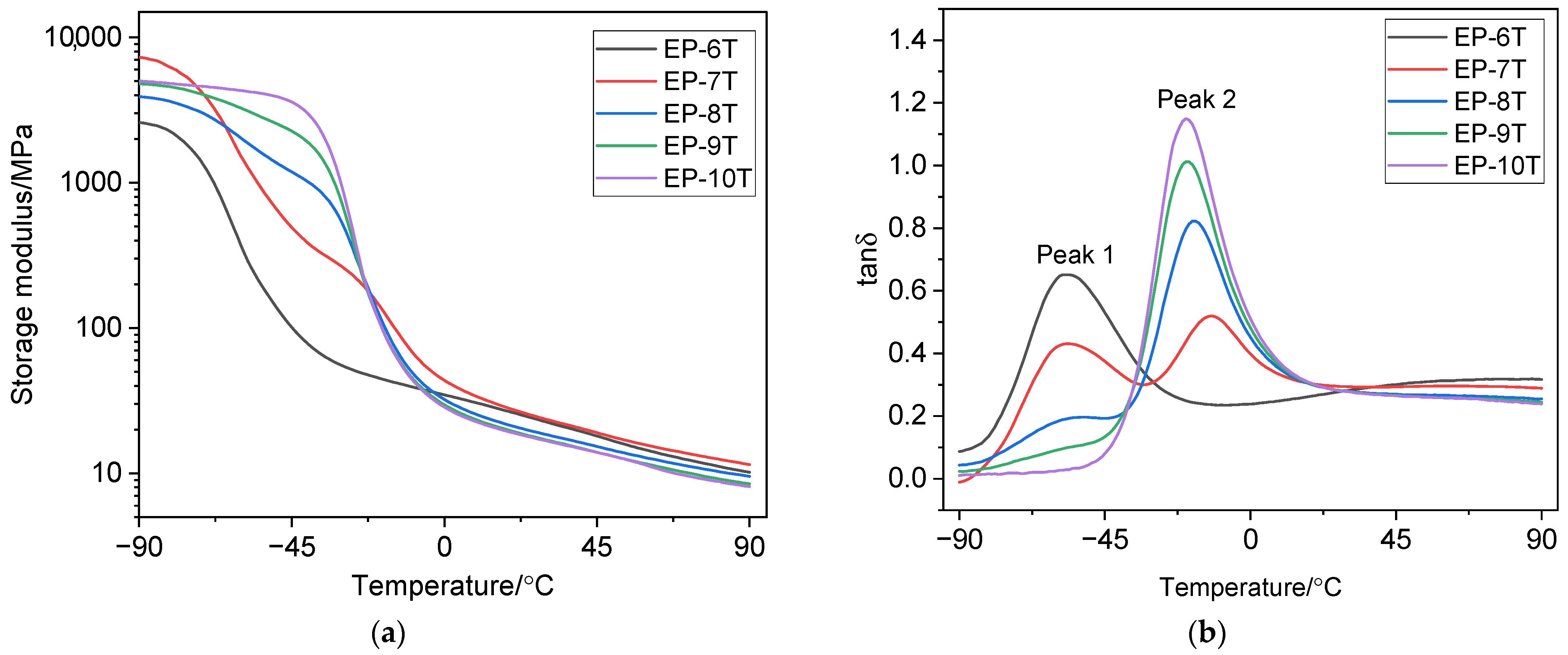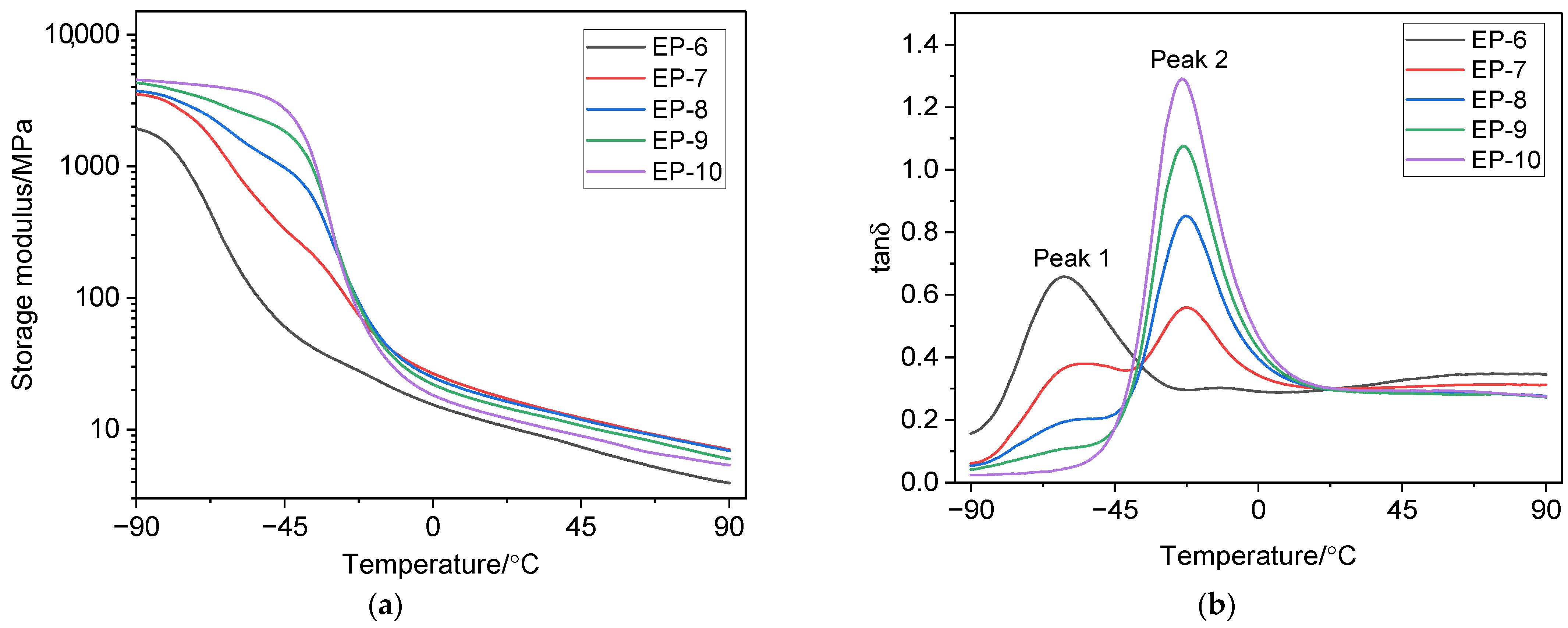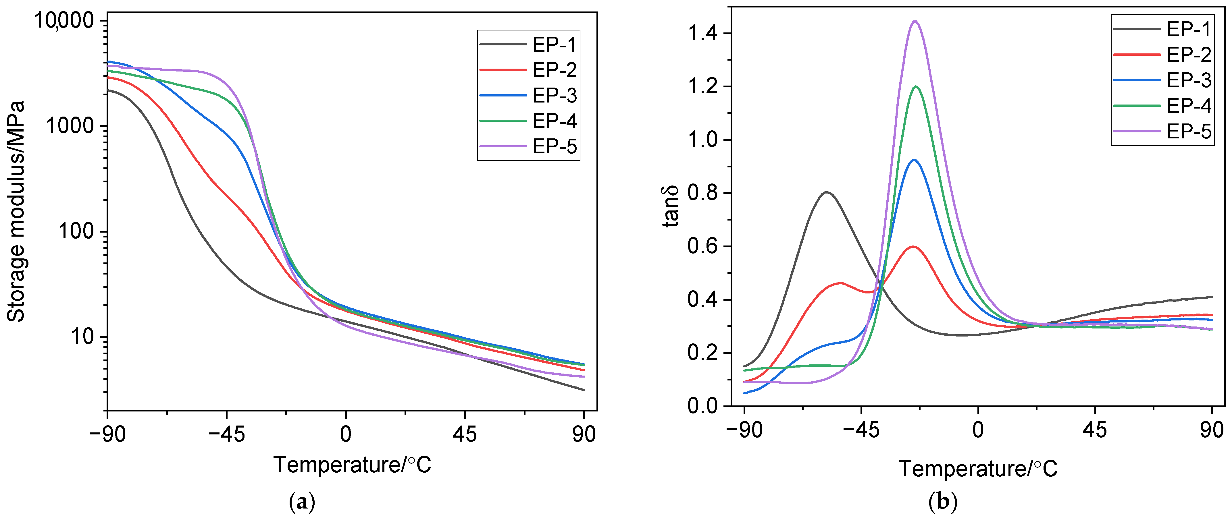 - Nair, T.M.; Kumaran, M.G.; Unnikrishnan, G.; Pillai, V.B. Dynamic Mechanical Analysis of Ethylene–Propylene–Diene Monomer Rubber and Styrene–Butadiene Rubber Blends. J. Appl. Polym. Sci. 2009, 112, 72–81. [Google Scholar] [CrossRef]