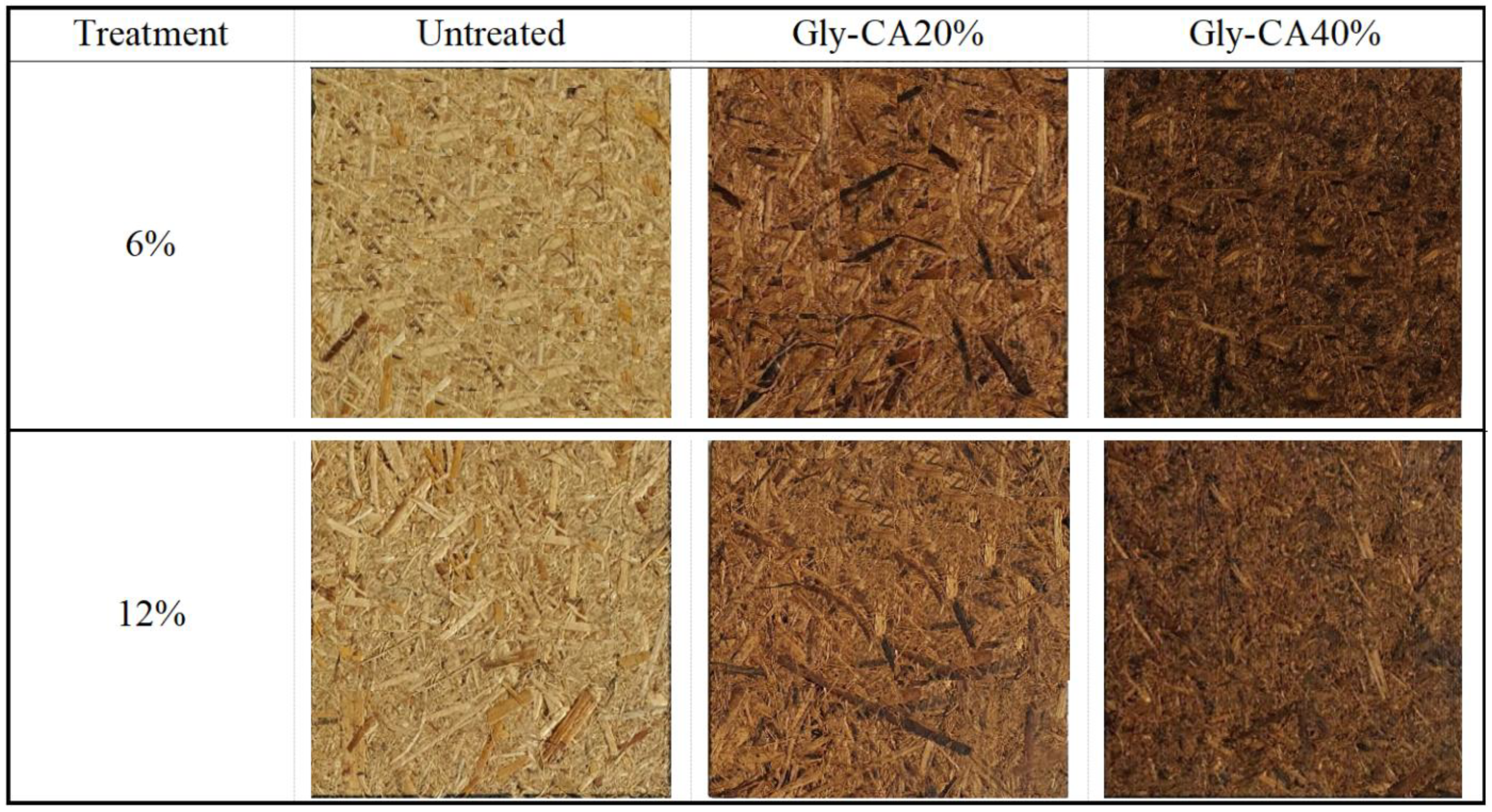- Essoua Essoua, G.G.; Blanchet, P.; Landry, V.; Beauregard, R. Pine Wood Treated with a Citric Acid and Glycerol Mixture: Biomaterial Performance Improved by a Bio-Byproduct. Bioresources 2016, 11, 3049–3072. [Google Scholar] [CrossRef]