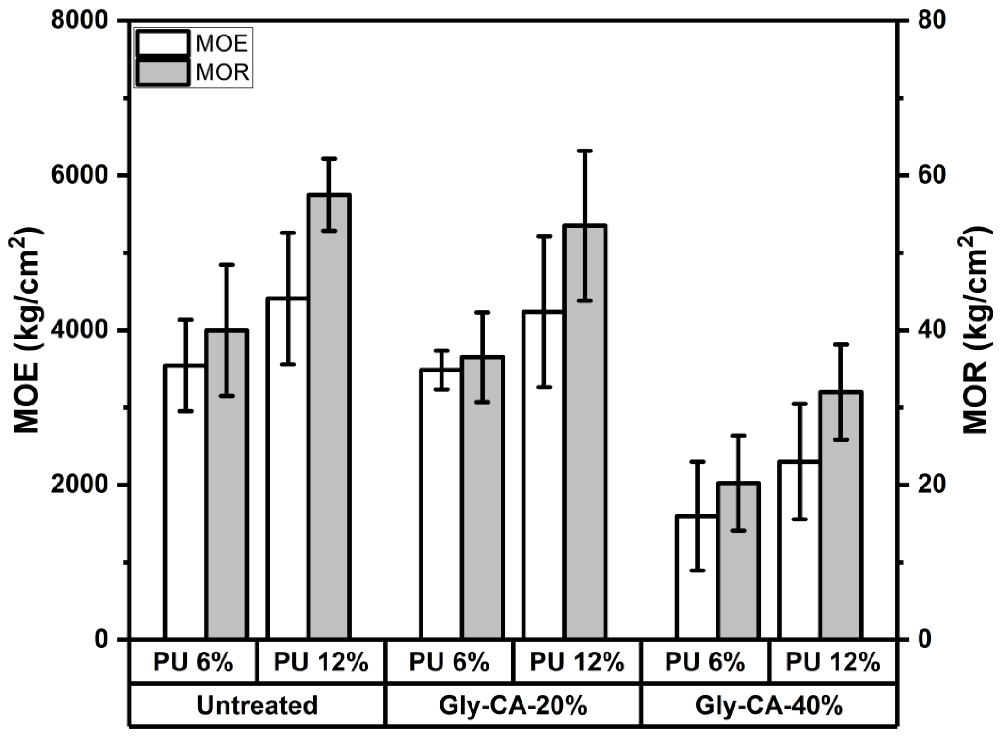- Xie, Y.; Fu, Q.; Wang, Q.; Xiao, Z.; Militz, H. Effects of Chemical Modification on the Mechanical Properties of Wood. Eur. J. Wood Wood Prod. 2013, 71, 401–416. [Google Scholar] [CrossRef]