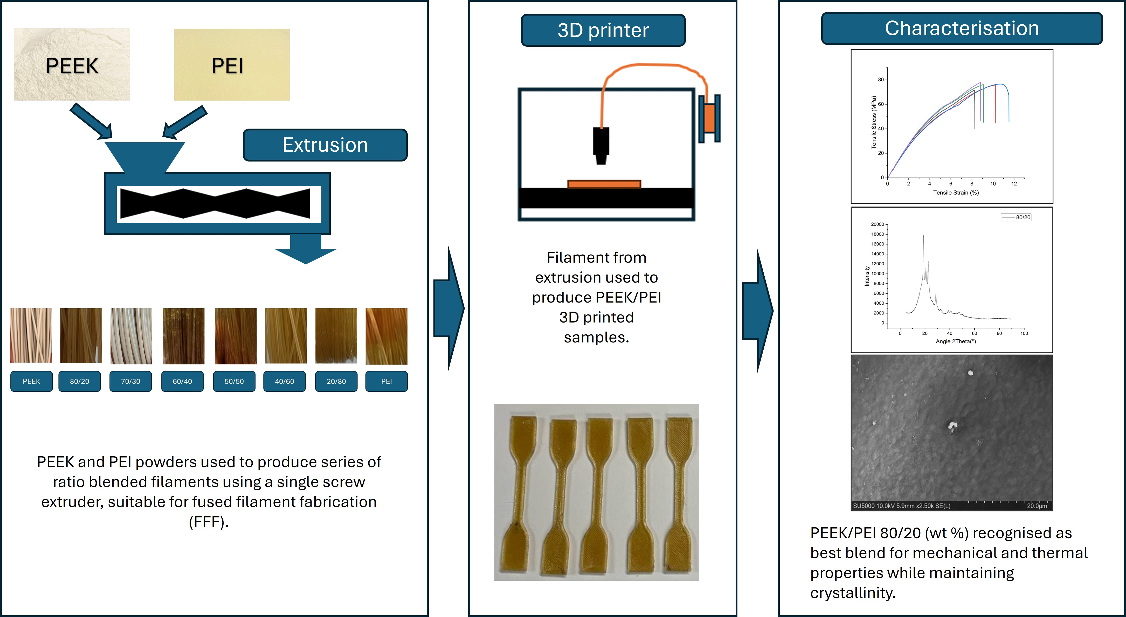 McCrickard C, Boyd A, Rodzen K, Archer E, Manzoor F, Ullah J. PEEK/PEI Polymer Blends for Fused Filament Fabrication: Processing, Properties, and Printability. Polymers. 2026; 18(1):113. https://doi.org/10.3390/polym18010113