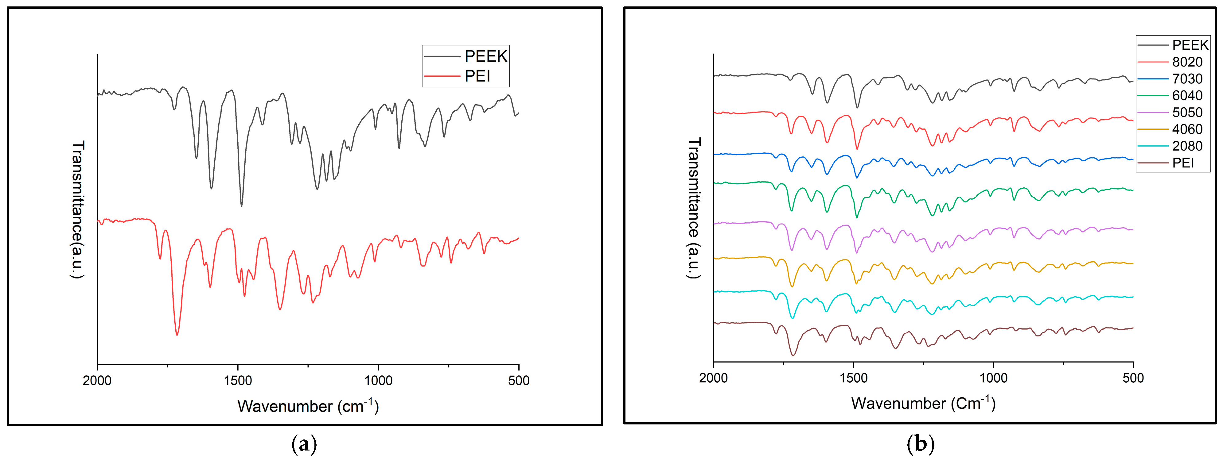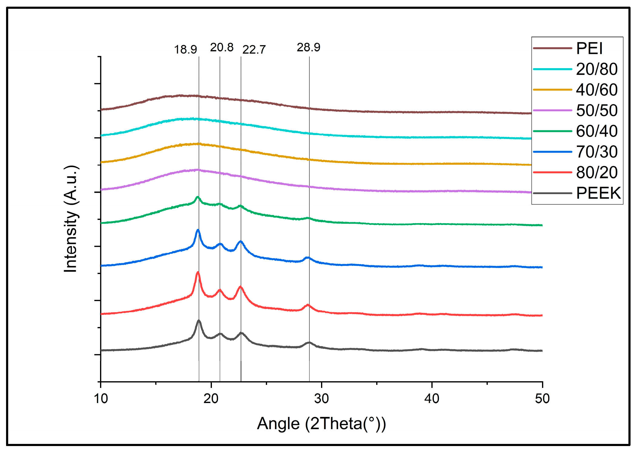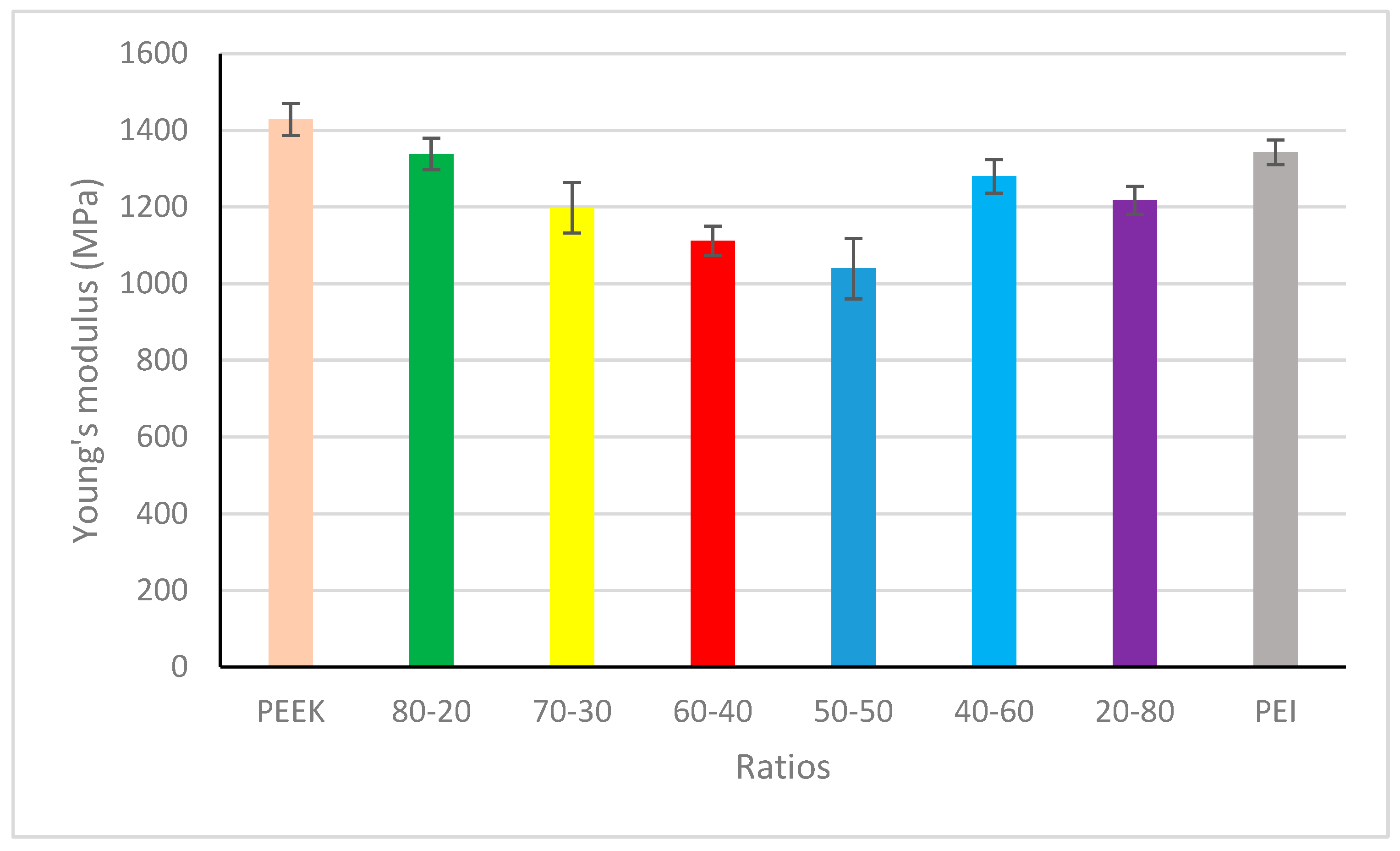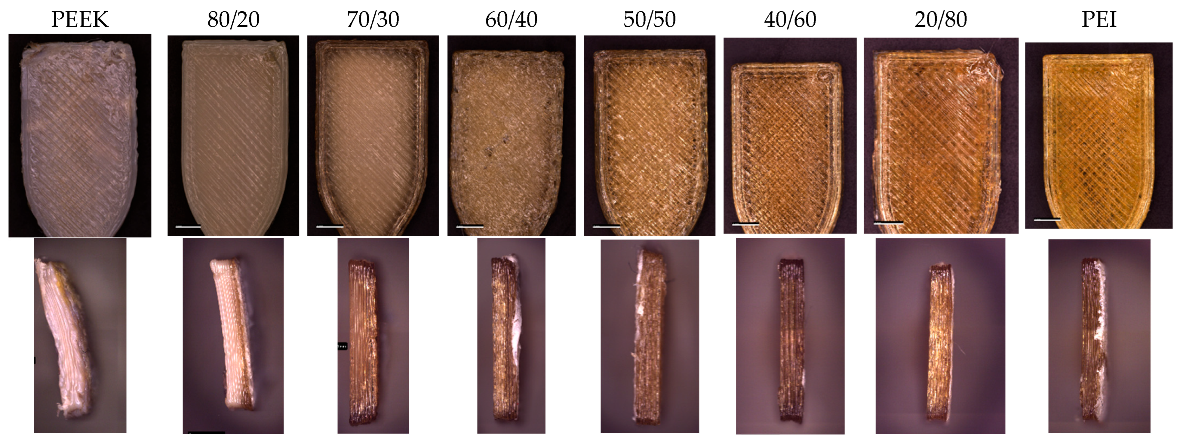 3.5. Mechanical Properties of 3D-Printed PEEK/PEI Blends
