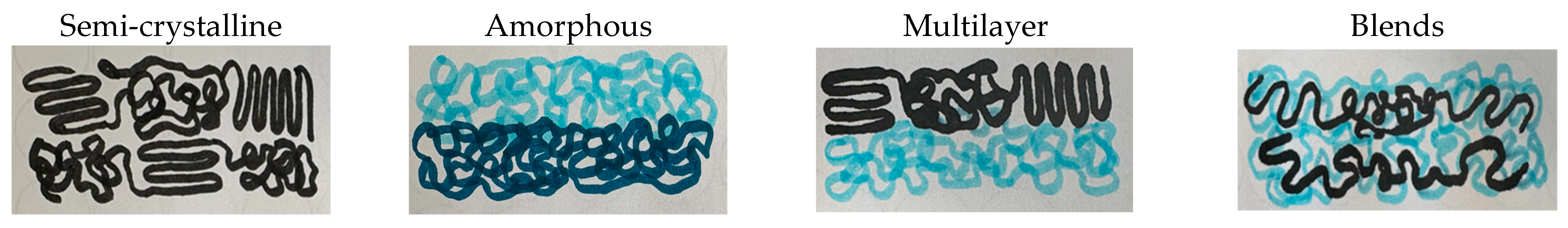 - Simunec, D.P.; Jacob, J.; Kandjani, A.E.; Trinchi, A.; Sola, A. Facilitating the additive manufacture of high-performance polymers through polymer blending: A review. Eur. Polym. J. 2023, 201, 112553. [Google Scholar] [CrossRef]