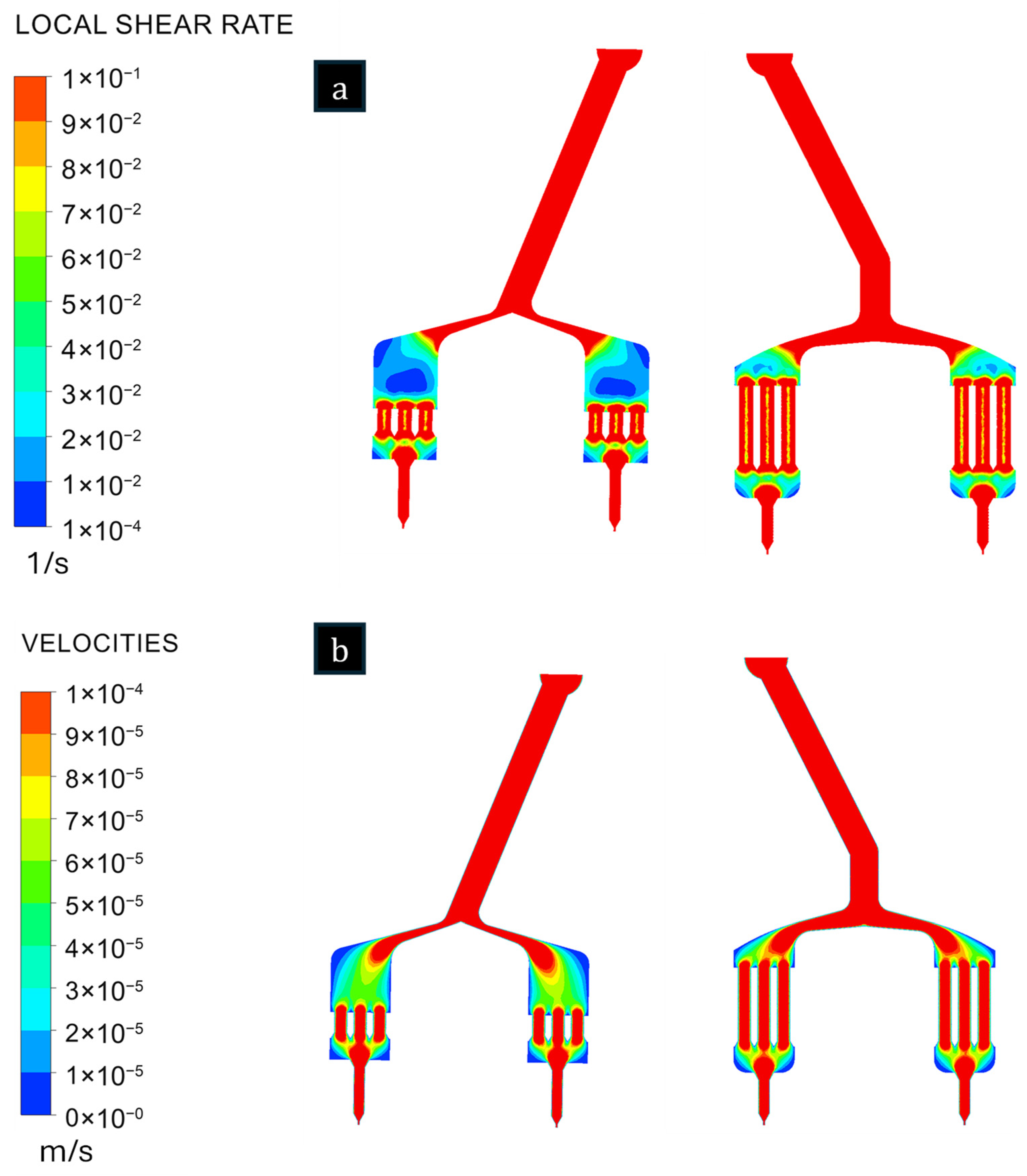 - Wagner, G.; Vidal, J.; Barbat, P.; Gonnet, J.M.; Nóbrega, J.M. A Novel Approach to Automatically Balance Flow in Profile Extrusion Dies Through Computational Modeling. Polymers 2025, 17, 1498. [Google Scholar] [CrossRef]