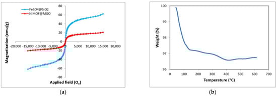 (a) VSM and (b) TGA of NiMOF@MGO composite.