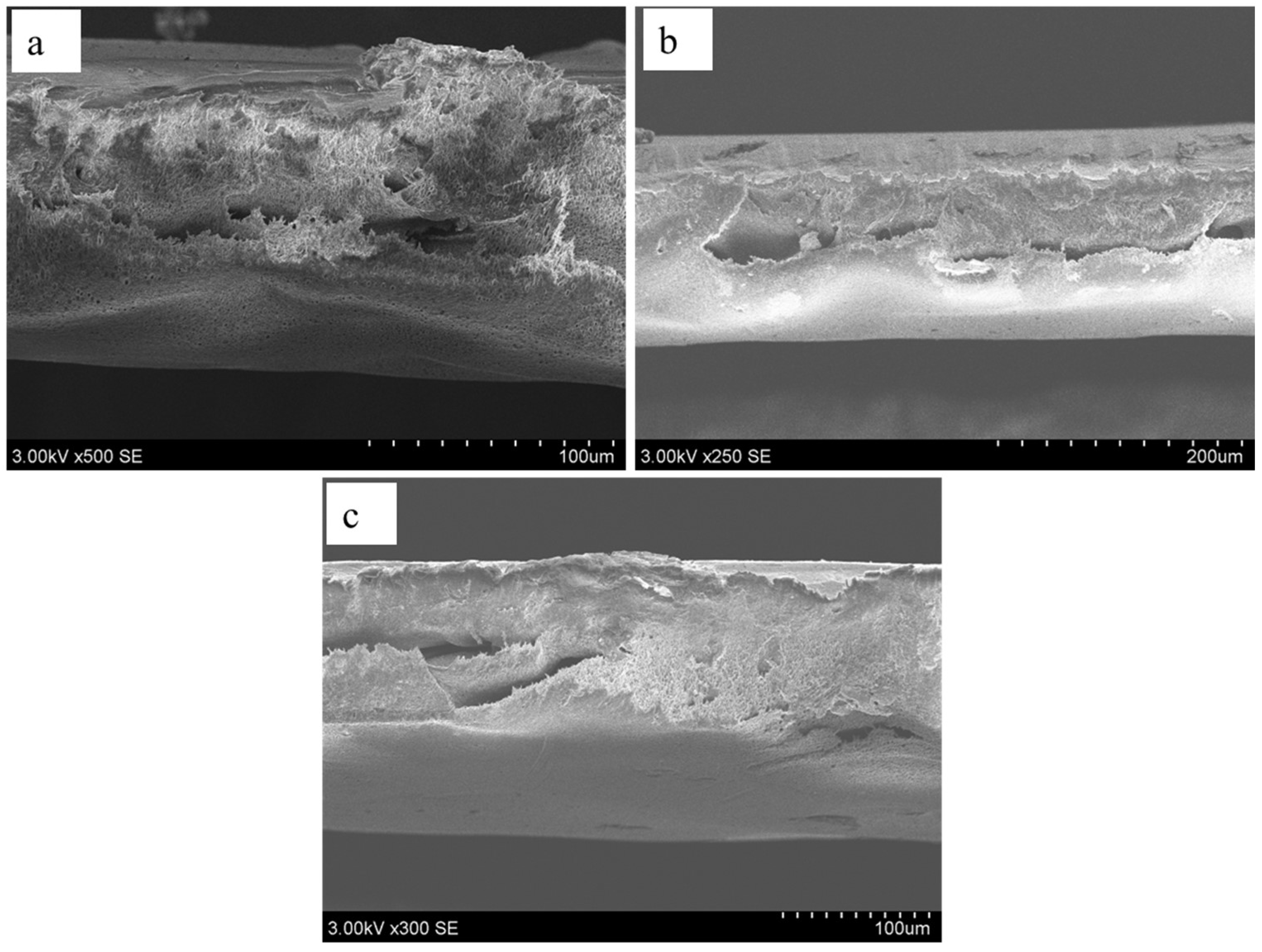 SEM cross-sections images of developed: (a) PSF, (b) PMM-0.1, and (c) PMM-0.2.