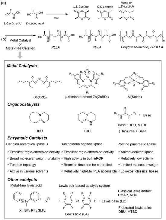 - Dutta, S.; Hung, W.C.; Huang, B.H.; Lin, C.C. Recent Developments in Metal-Catalyzed Ring-Opening Polymerization of Lactides and Glycolides: Preparation of Polylactides, Polyglycolide, and Poly(lactide-co-glycolide). In Synthetic Biodegradable Polymers; Rieger, B., Künkel, A., Coates, G.W., Reichardt, R., Dinjus, E., Zevaco, T.A., Eds.; Springer: Berlin/Heidelberg, Germany, 2012; pp. 219–283. [Google Scholar]