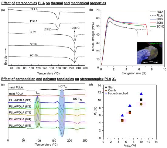 - Chen, Q.; Auras, R.; Uysal-Unalan, I. Role of stereocomplex in advancing mass transport and thermomechanical properties of polylactide. Green Chem. 2022, 24, 3416–3432. [Google Scholar] [CrossRef]