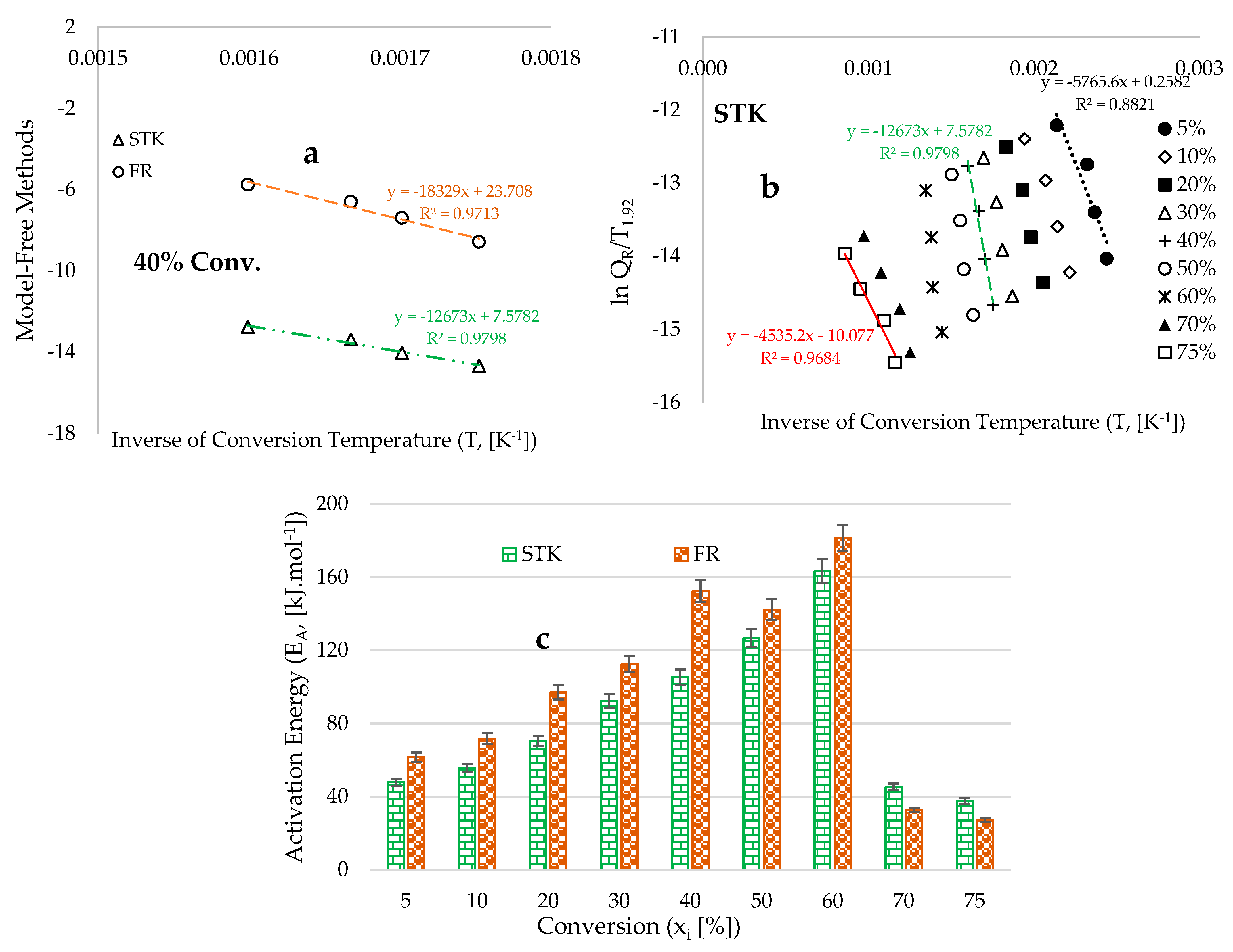 - Starink, M.J. The Determination of Activation Energy from Linear Heating Rate Experiments: A Comparison of the Accuracy of Isoconversion Methods. Thermochim. Acta 2003, 404, 163–176. [Google Scholar] [CrossRef]