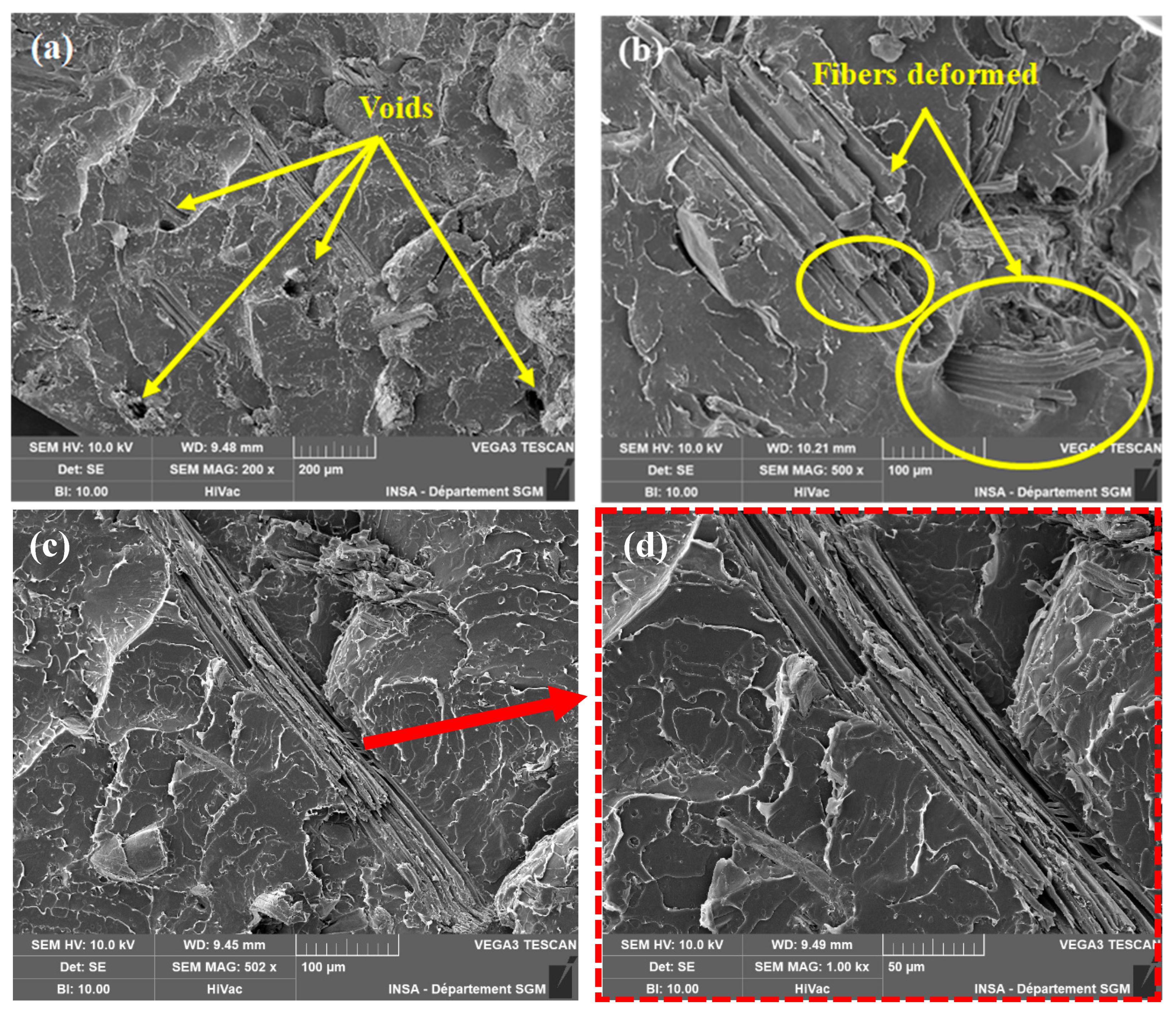 This section clearly demonstrates the influence of the chemical treatment on the stability of the composite under thermomechanical stresses. Therefore, only the treated and neutralized fiber surface (TSCB) will be considered for the rest of the study.