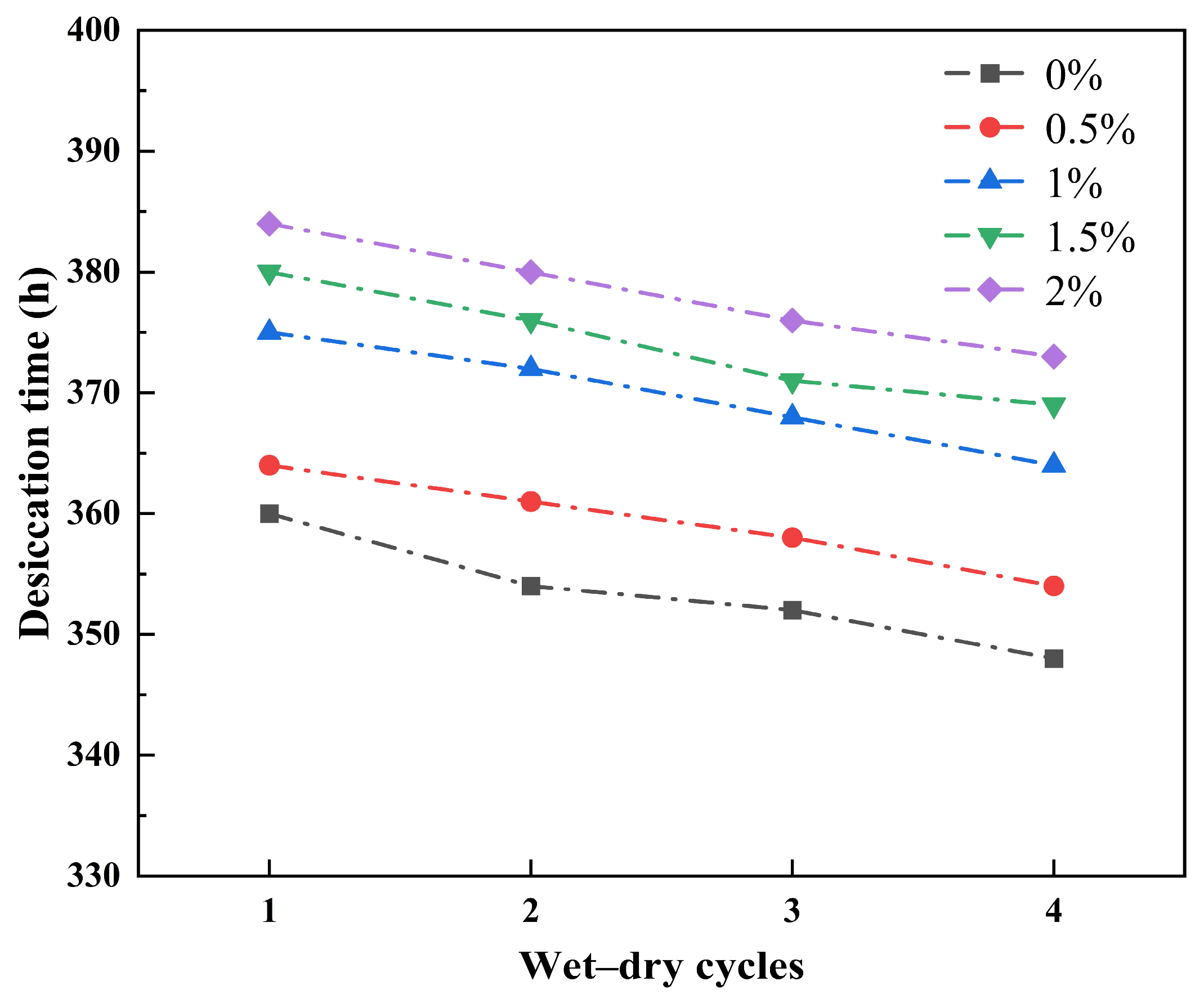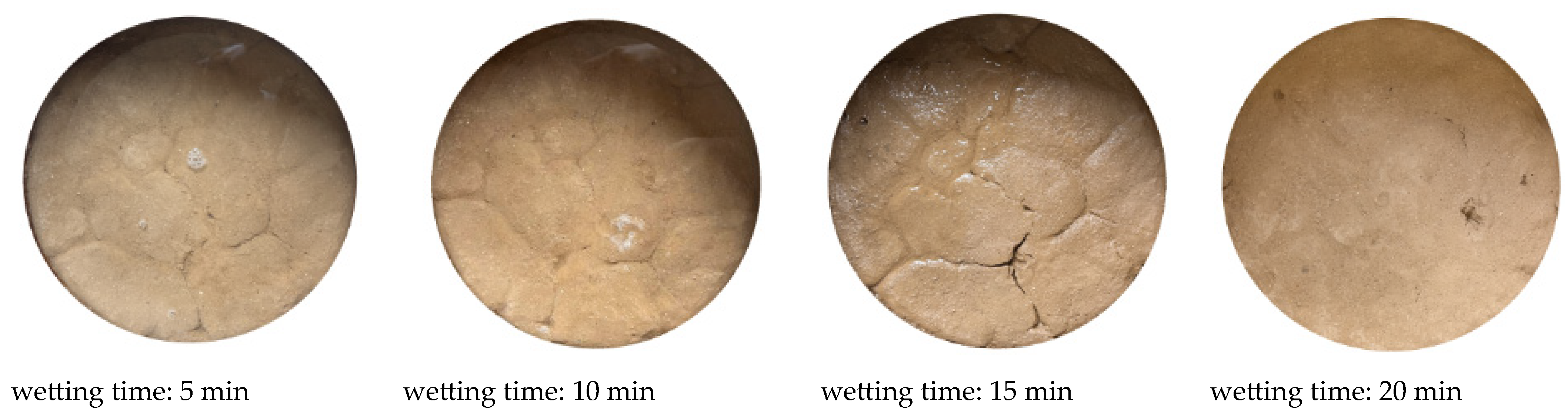 3.3.1. Effect of Wetting–Drying Cycles on Desiccation Time