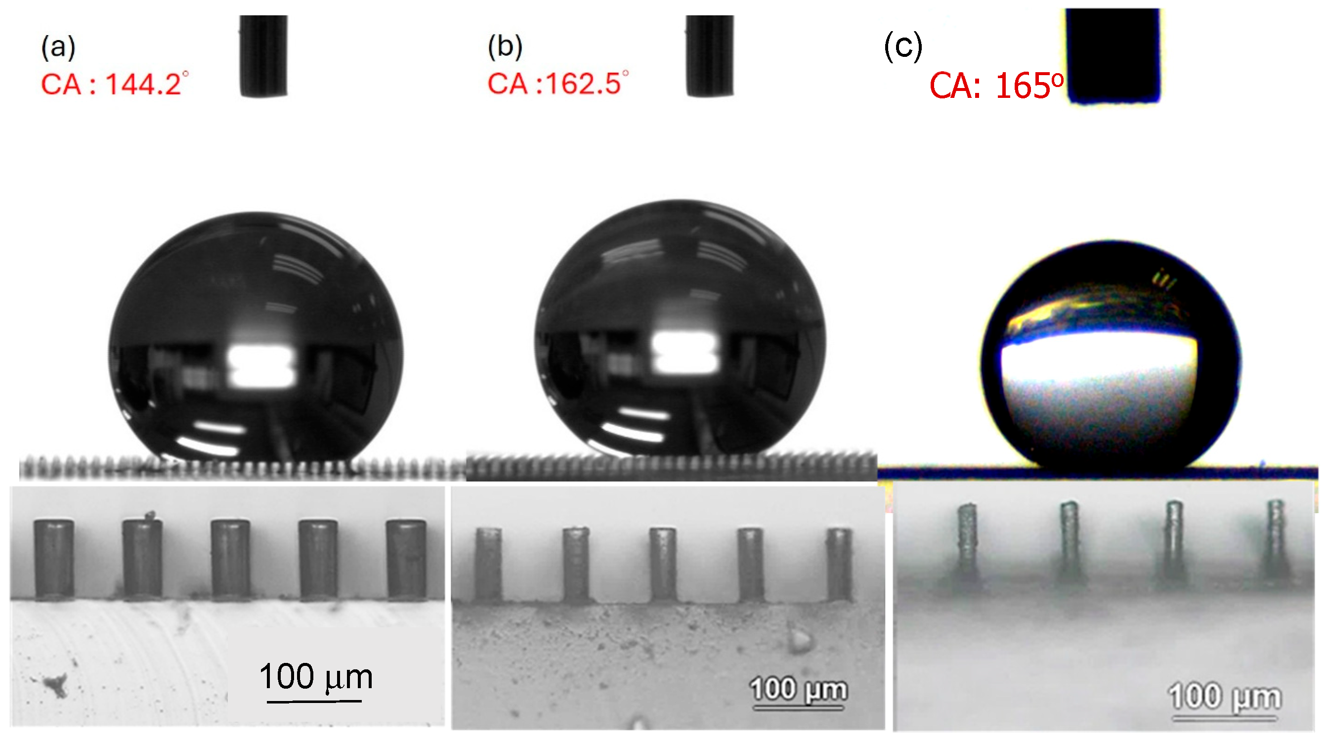Chicago/Turabian StylePei, Wu-Hsuan, Chuan-Chieh Hung, and Yi-Je Juang. 2026. "Fabrication of a Superhydrophobic Surface via Wet Etching of a Polydimethylsiloxane Micropillar Array" Polymers 18, no. 1: 132. https://doi.org/10.3390/polym18010132
