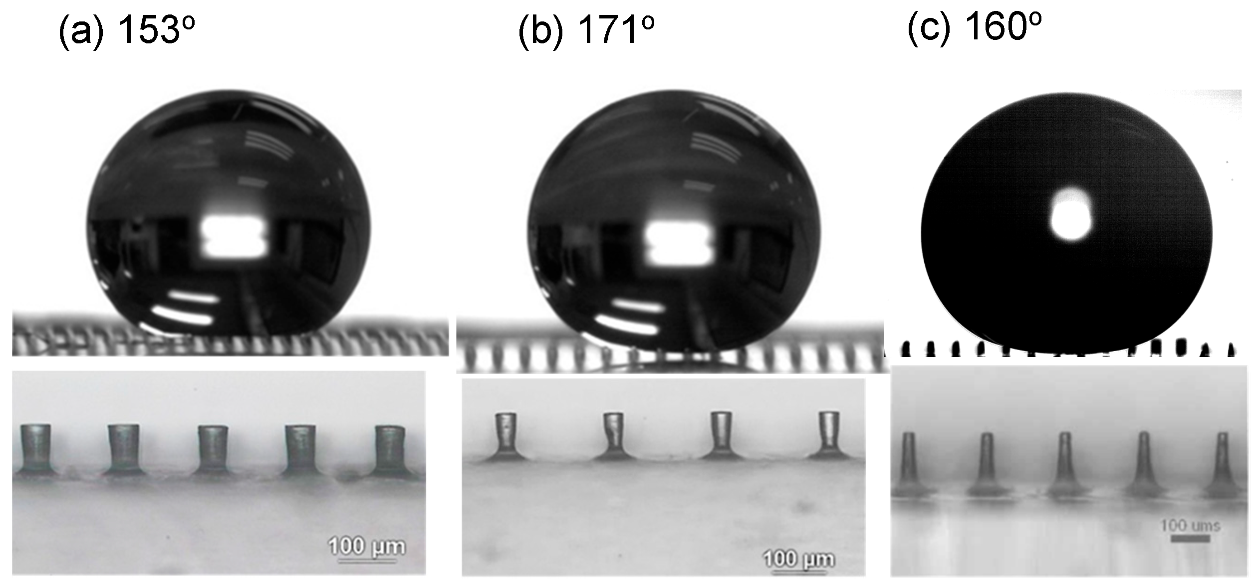 - Kim, H.; Lee, H. Low-Surface-Energy Capped Hydrogel Micropillar Arrays for Transparent Superhydrophobic Antifogging Surfaces. Small 2025, 21, e09390. [Google Scholar] [CrossRef]