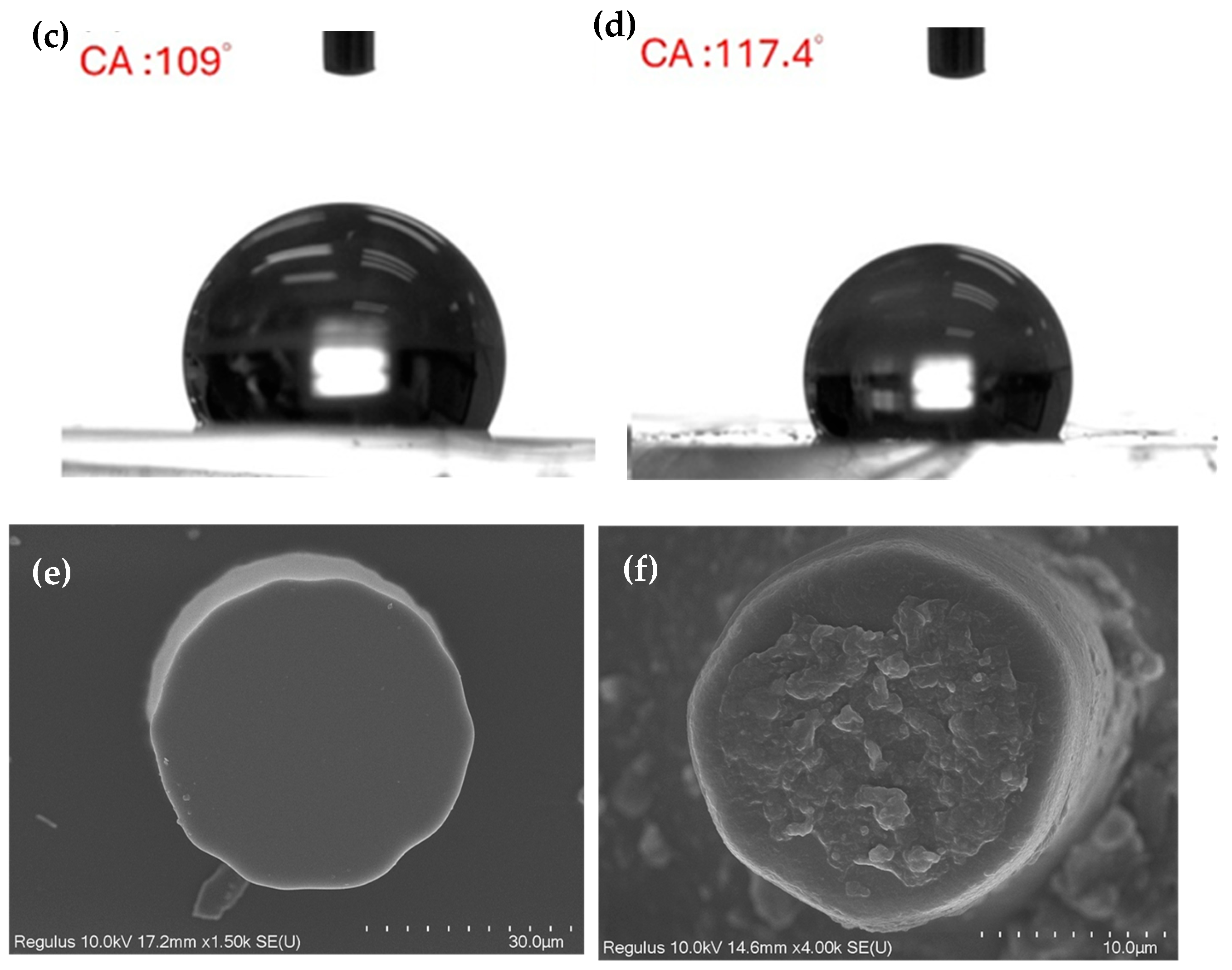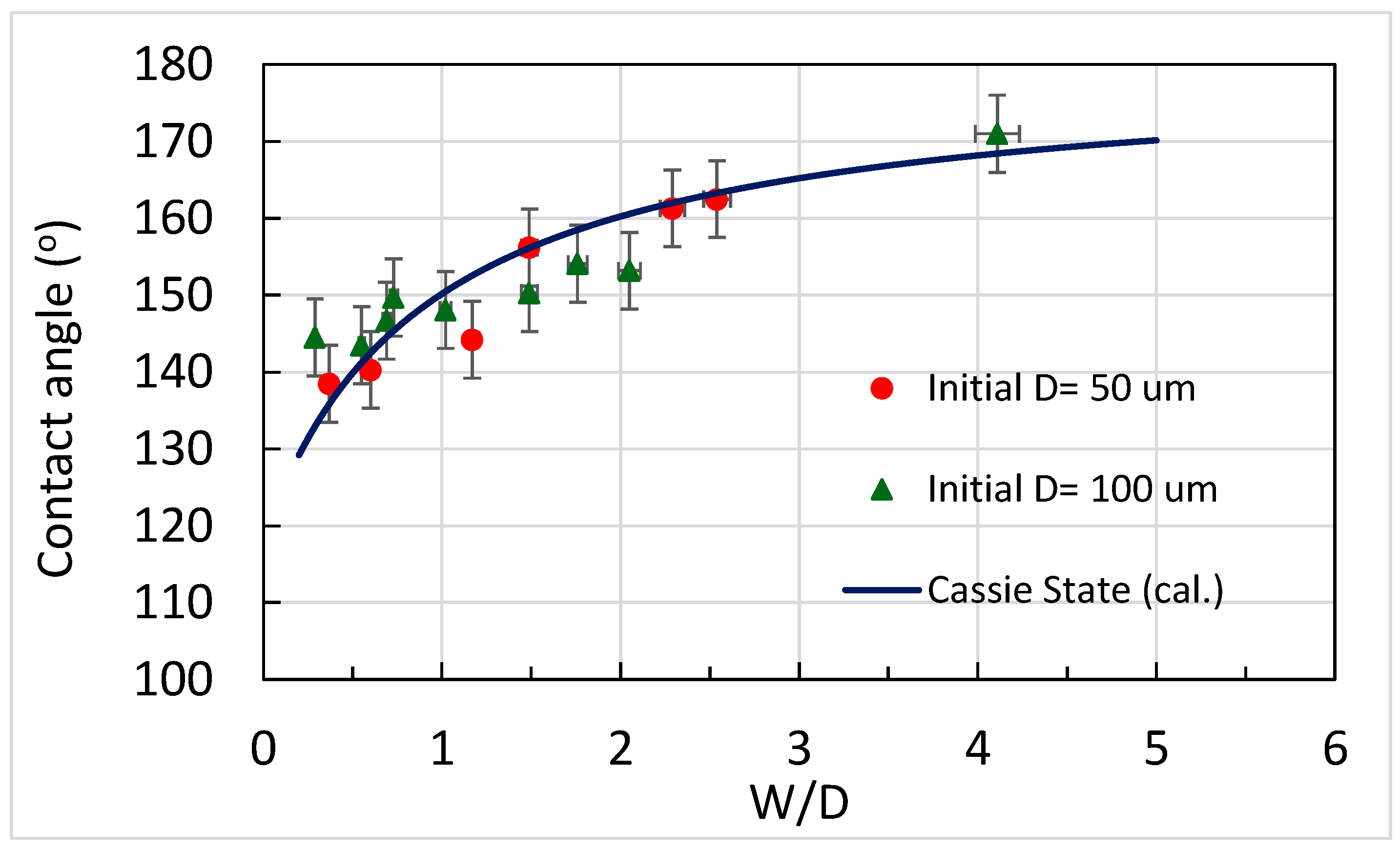 - Wenzel, R.N. Resistance of solid surfaces to wetting by water. Ind. Eng. Chem. 1936, 28, 988–994. [Google Scholar] [CrossRef]