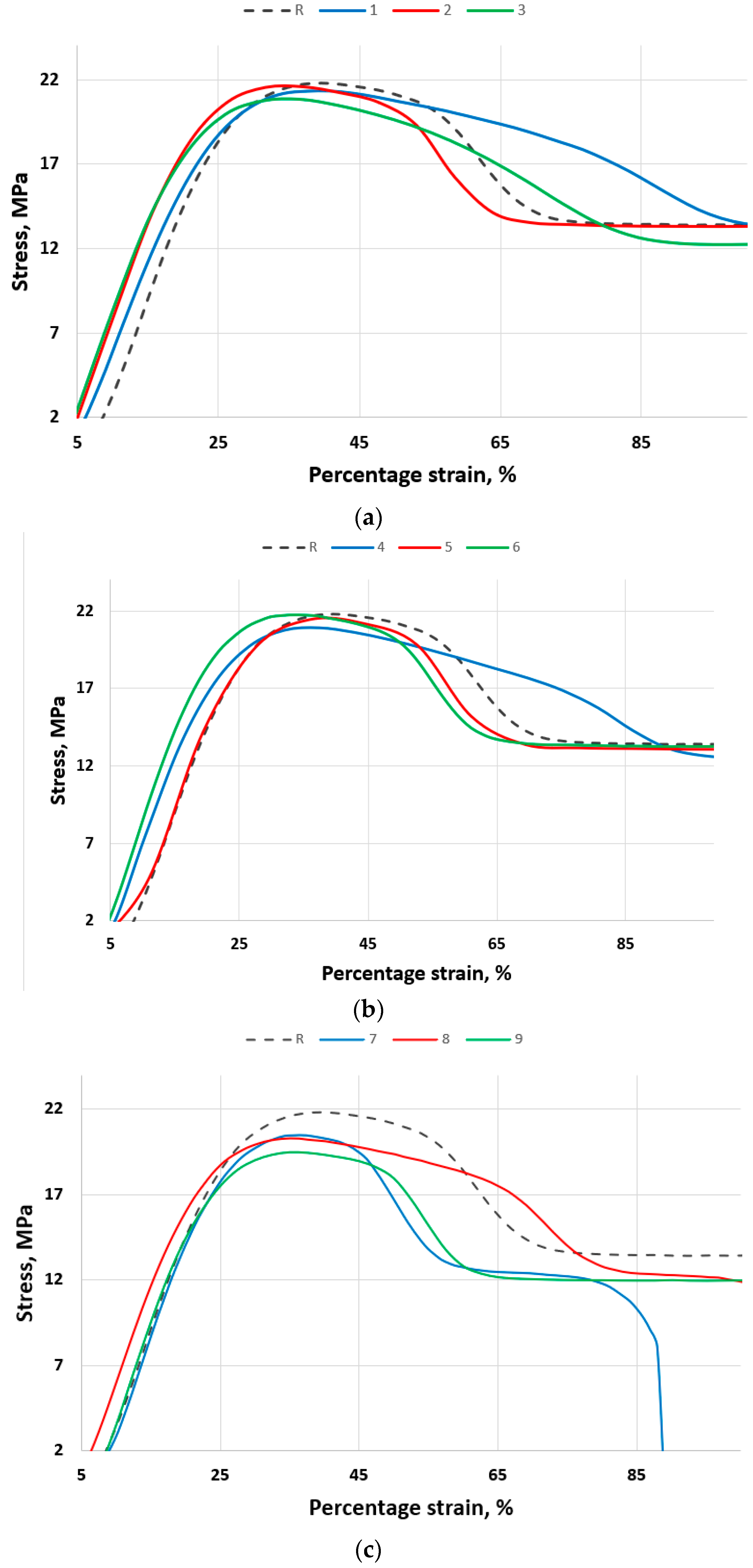 | Specimen | Tensile Strength at Yield, MPa | Elongation at Yield, % |
