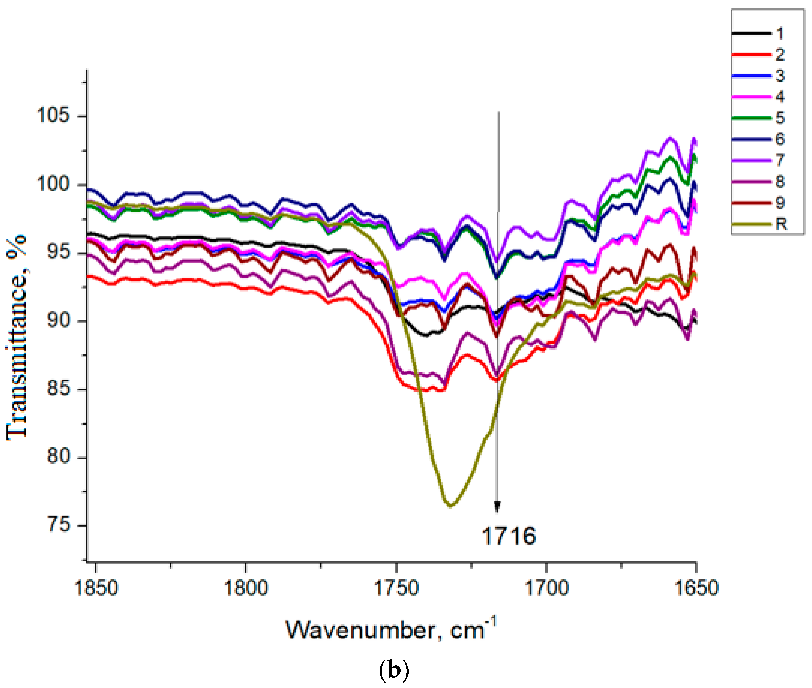 - Stuart, B.H. Infrared Spectroscopy: Fundamentals and Applications, 1st ed.; Analytical Techniques in the Sciences; Wiley: Hoboken, NJ, USA, 2004; ISBN 978-0-470-85427-3. [Google Scholar]