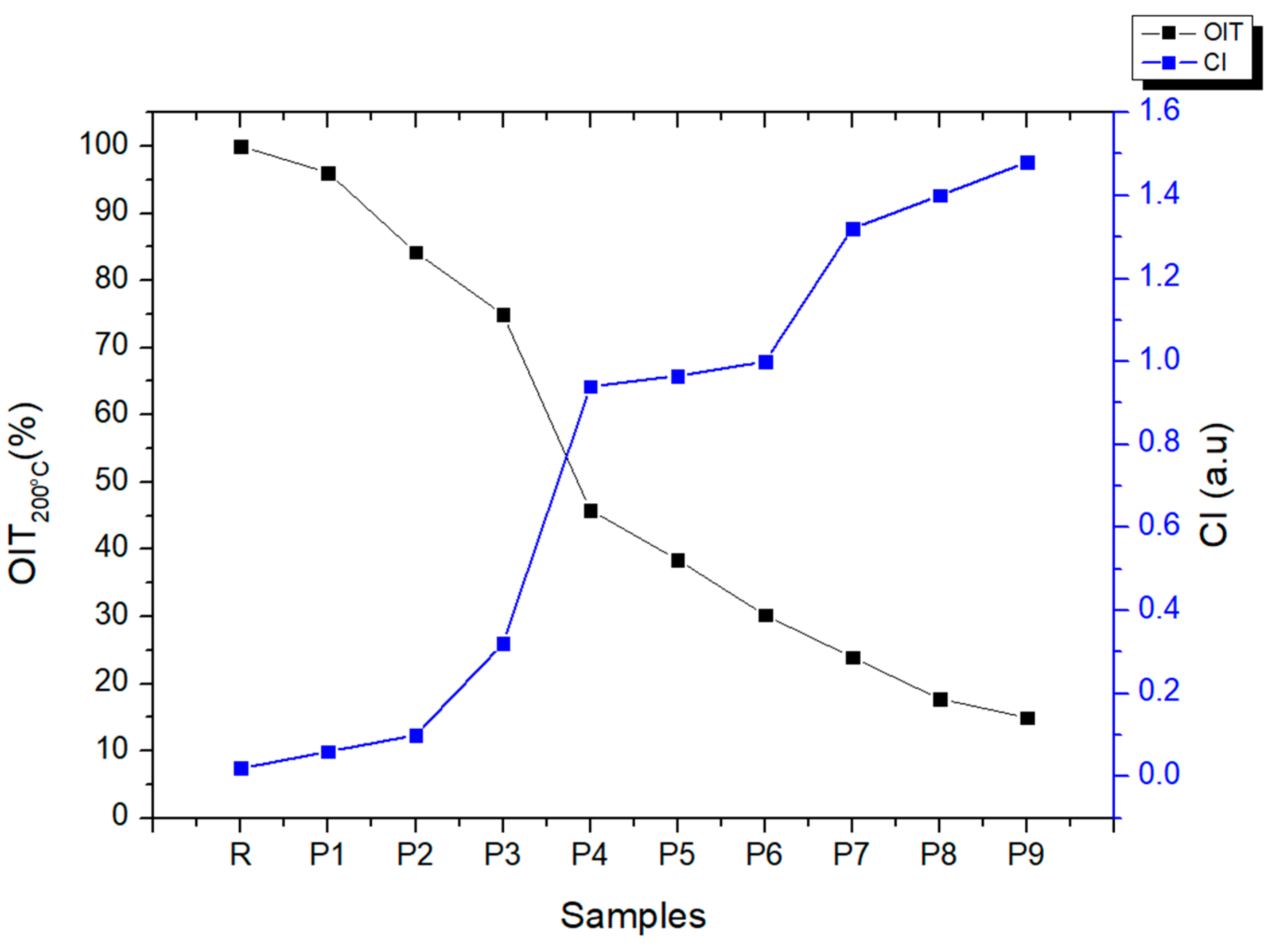 - ASTM D3895-19; Standard Test Method for Oxidative-Induction Time of Polyolefins by Differential Scanning Calorimetry. ASTM International: West Conshohocken, PA, USA, 2019.