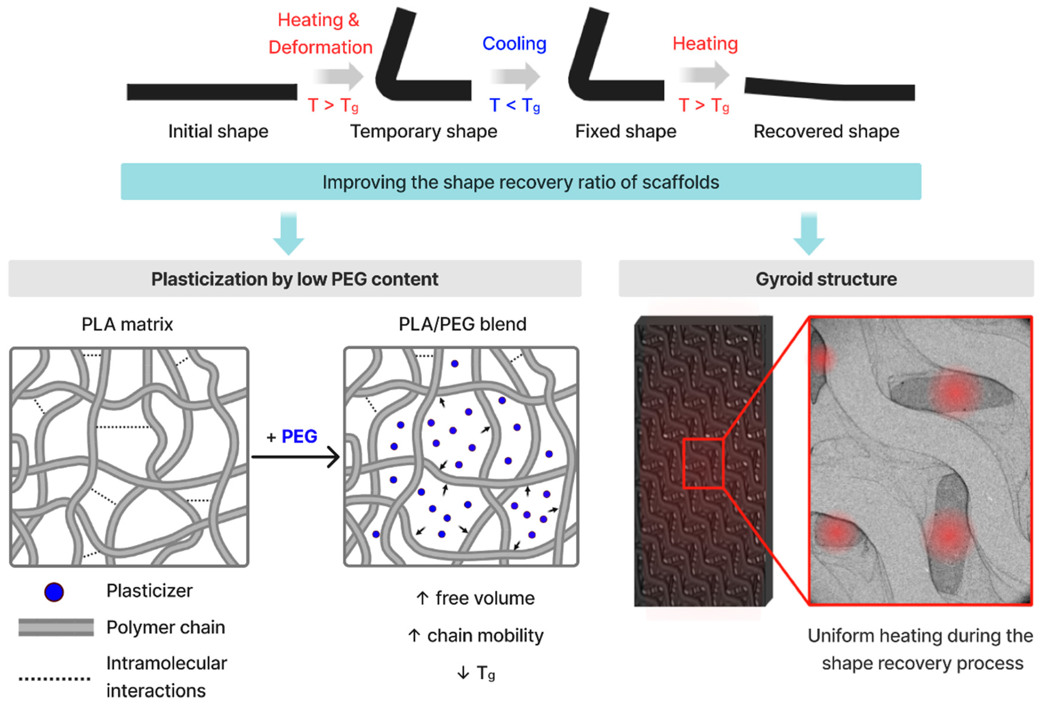 1]. Among available SMPs, PLA is particularly appealing for bone tissue engineering because it is bio–based, bioresorbable, and readily processed by material extrusion 3D printing. However, its relatively high glass transition temperature (