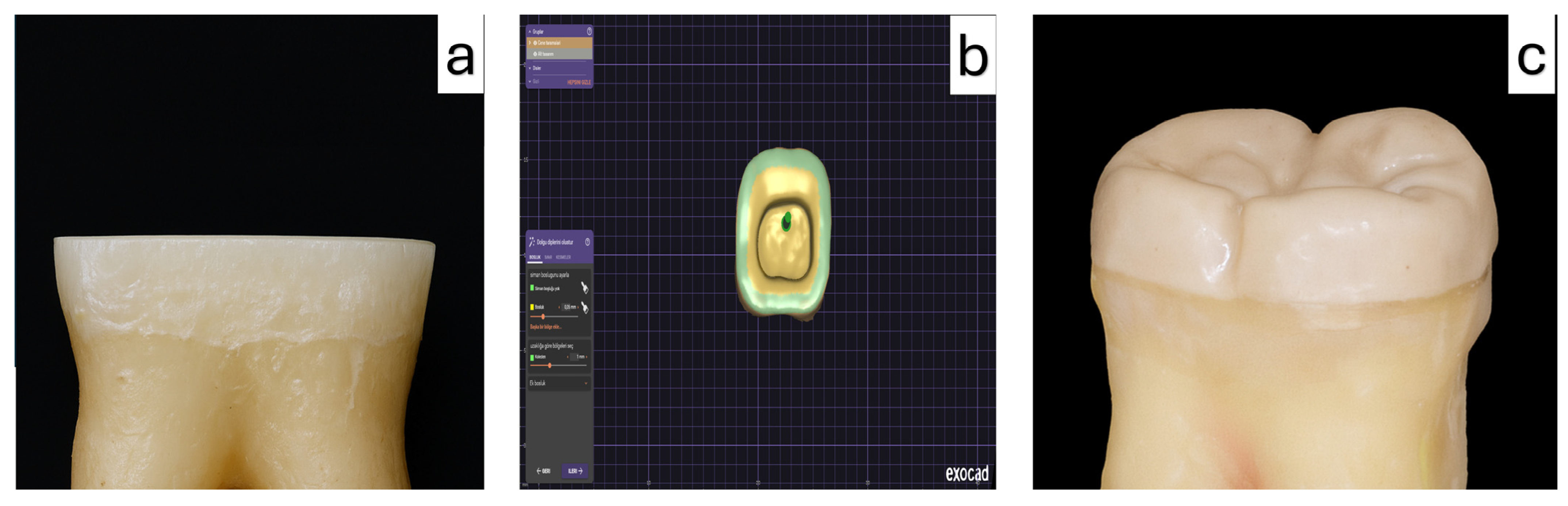- Sasany, R.; Yilmaz, B. Marginal discrepancy and fracture load of thermomechanically fatigued crowns fabricated with different CAD-CAM techniques. J. Prosthodont. 2023, 32, 602–607. [Google Scholar] [CrossRef] [PubMed]